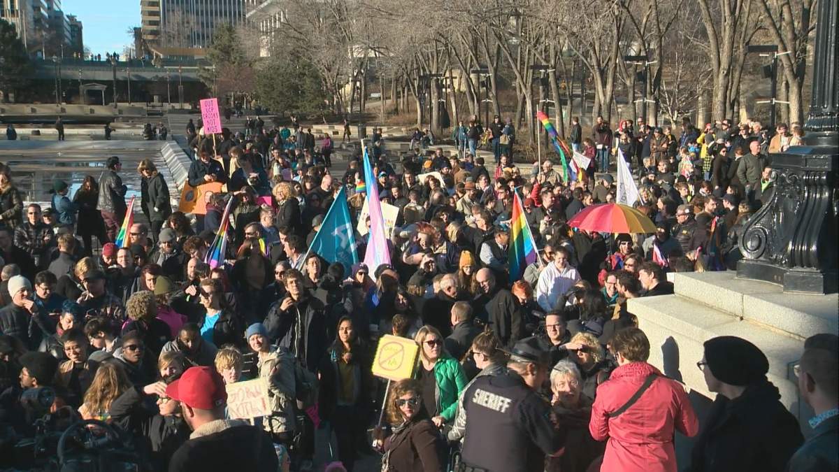 WATCH BELOW: Hundreds gathered at the Alberta Legislature Wednesday, protesting against the United Conservative Party’s policy announcement on gay-straight alliances. Quinn Ohler explains what the UCP wants to change, and why it has so many people up in arms.