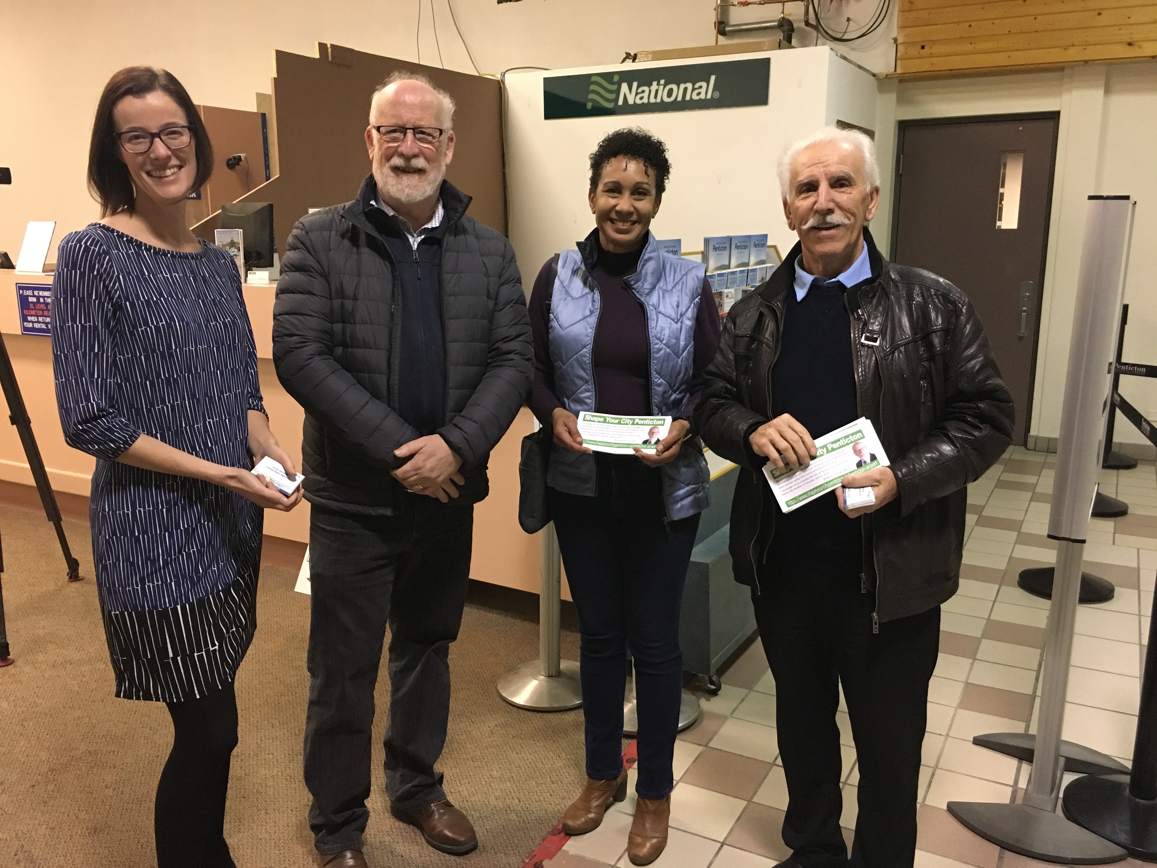 MP Richard Cannings, Penticton mayor John Vassilaki and Summerland mayor Toni Boot handed out flyers on Thursday morning, encouraging travellers to fill out an online survey.