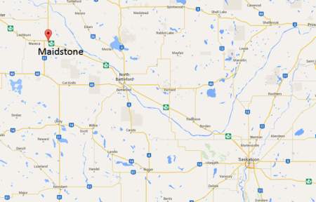Maidstone is approximately 205 kilometres northwest of Saskatoon.