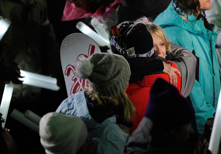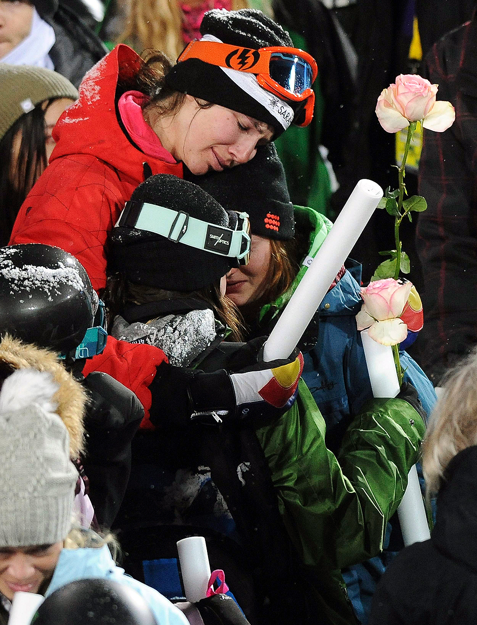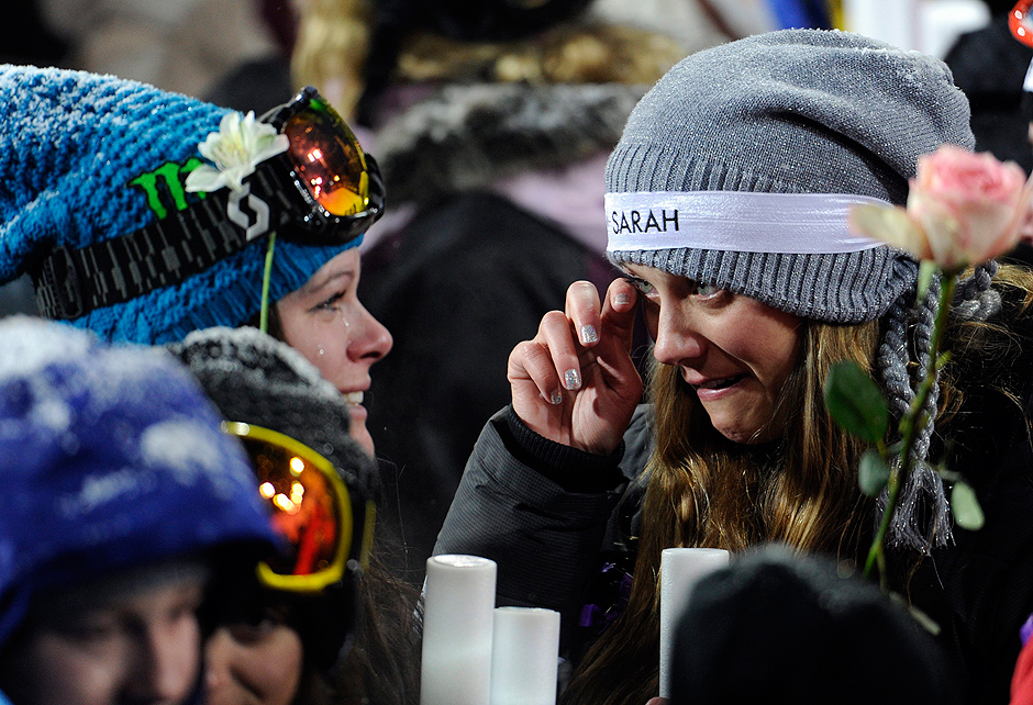 The honours for Canadian freestyle skier Sarah Burke continue. Friends and admirers of the freestyle pioneer took a slow trip down a darkened halfpipe at the Winter X-Games while holding glow sticks in the air. They met Burke’s husband and parents at the bottom. The 29-year-old Burke died following a training accident on a halfpipe in Utah last week.