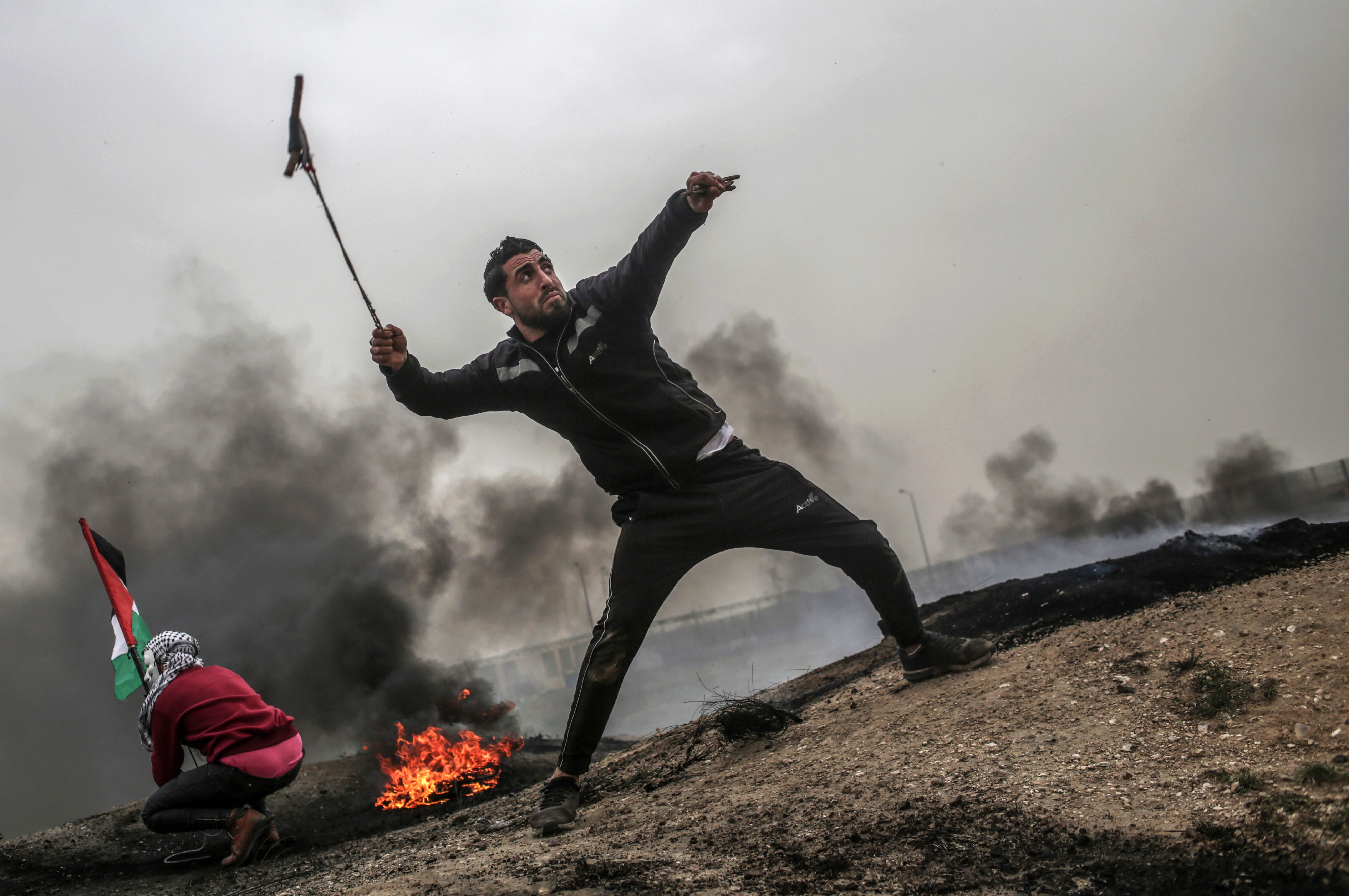 Most demonstrators kept their distance from the border, though small crowds of activists approached the perimeter fence and threw stones and explosives toward Israeli troops on the other side. The forces responded with tear gas and opened fire, killing four Palestinians and wounding 64.
