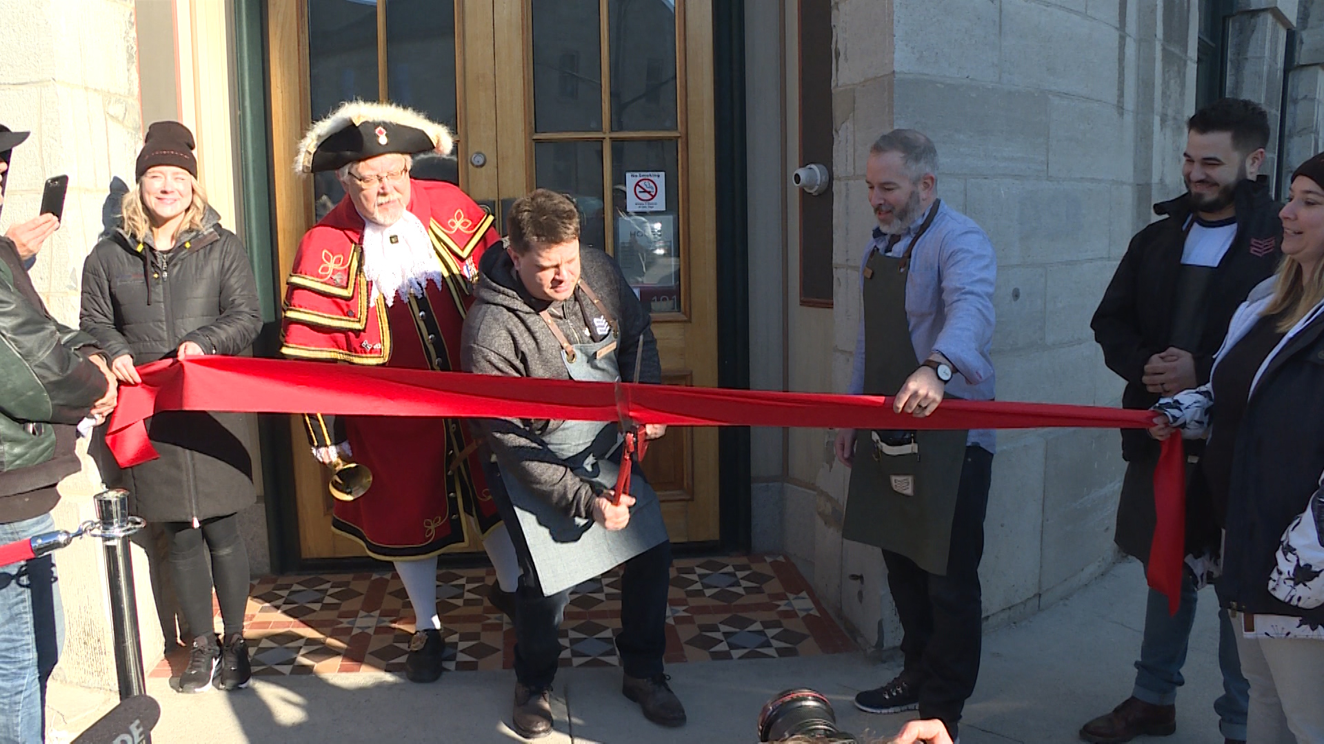 Waiting for the crowd of people outside Spiritleaf on Princess Street on Monday morning was a little entertainment, coffee, a red velvet rope and a red ribbon-cutting ceremony with town crier Chris Whyman.