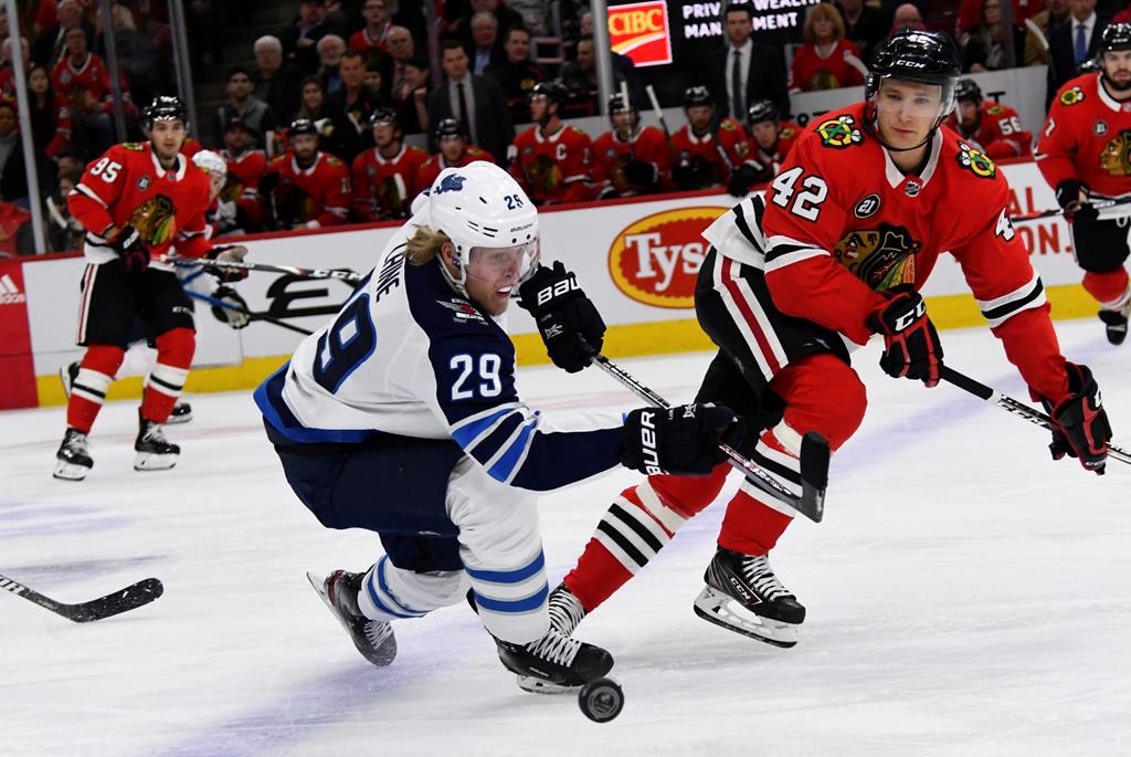 NOTES: Strome, acquired from Arizona in a trade on Nov. 25, 2018, has 16 goals and 32 assists in 55 games with Chicago. . Blackhawks forward David Kampf sat out with a facial injury sustained when he was struck with a puck in Los Angeles on Saturday. . No NHL team based in Winnipeg has ever finished in first place. The current Jets franchise, which entered the NHL in 1999-2000 as the Atlanta Thrashers, finished first in the league’s old Southeast Division in 2006-07. The team moved to Winnipeg in 2011. The original Winnipeg Jets franchise, which entered the NHL from the WHA in 1979, never finished higher than second before moving to Phoenix in 1996.