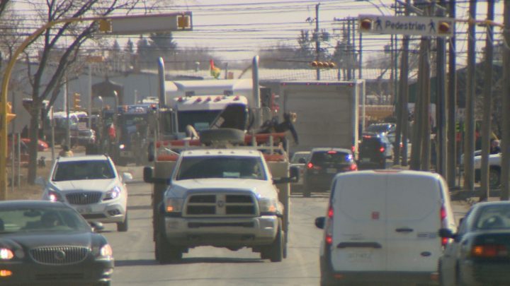 Dolter based his calculations on 700 Ford F-150 trucks travelling 15.9 km from Richardson – where most of the vehicles met – to the end of the convoy route at Evraz Place.
