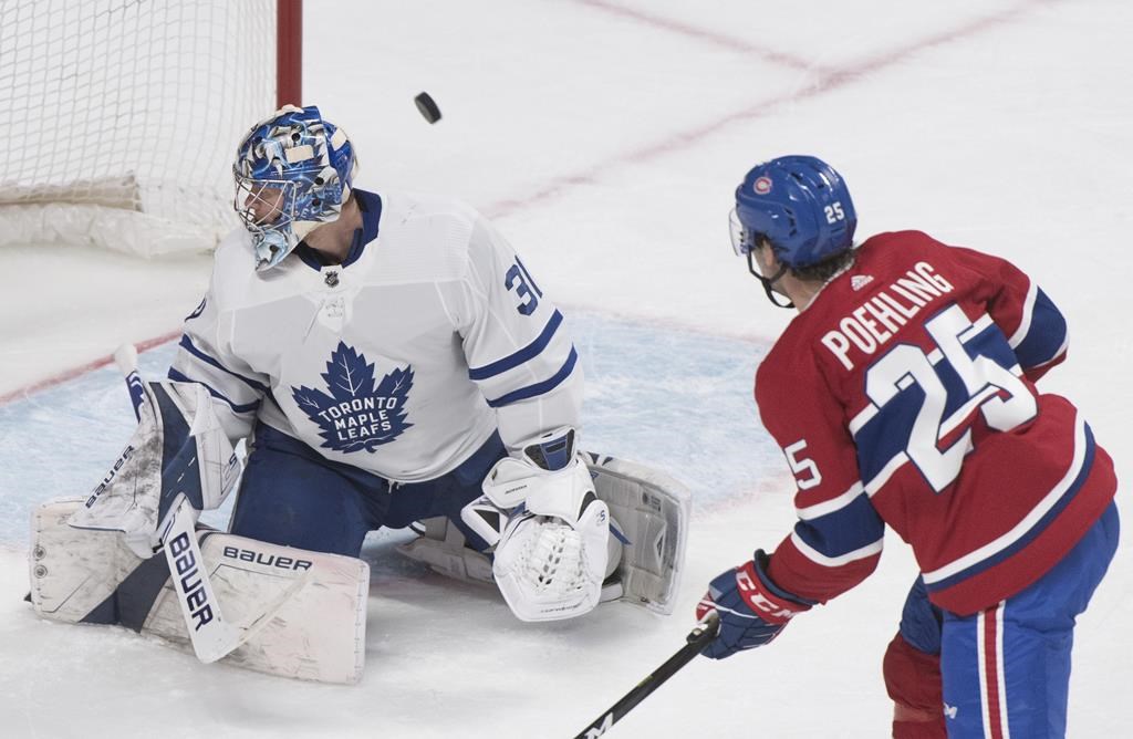 The Maple Leafs were leading 5-4 when Poehling completed his hat trick with 2:31 left on the clock.