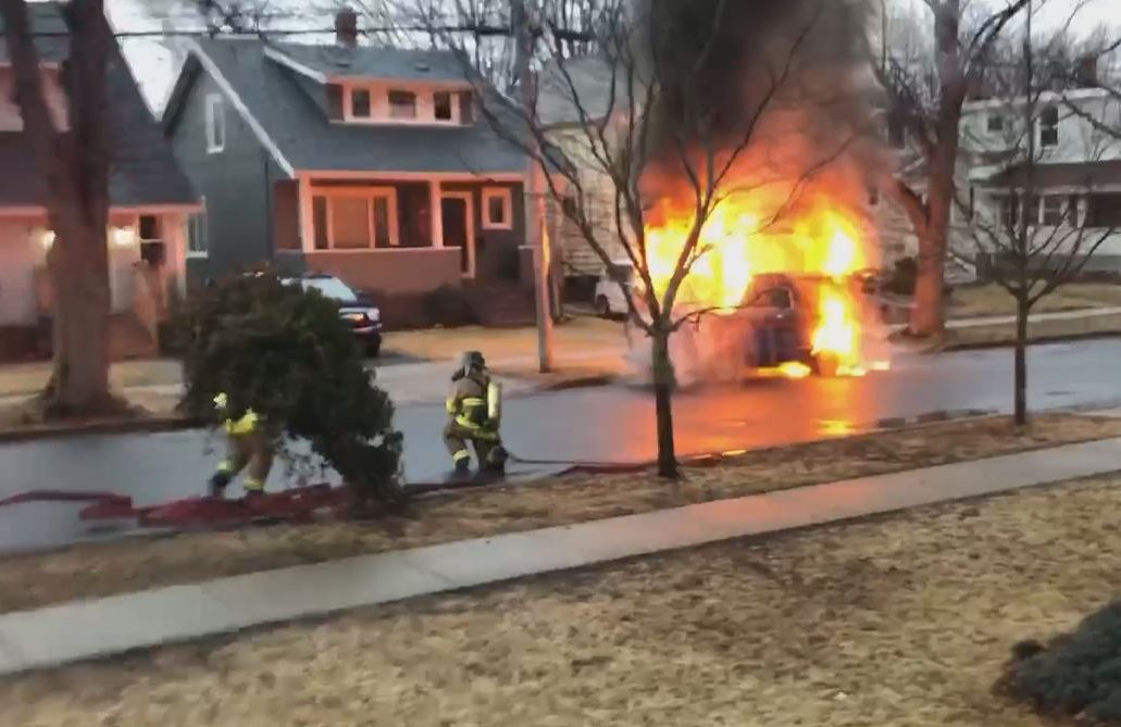 Stunning video has emerged of Halifax Regional Fire and Emergency crews battling a vehicle fire on a residential street Saturday.