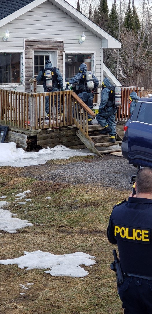 Officers were geared up in hazmat suits over the weekend to deal with the extensive amount of chemicals allegedly found on the property.