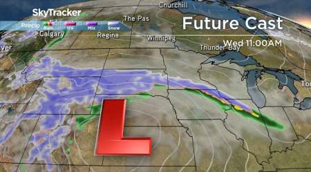 It’s going to be a cool week around southern Manitoba but at least there isn’t more snow coming. South of the border, that’s a different story.