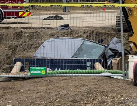 Police say the vehicle hit some material being used in the repair and fell into the deep hole.