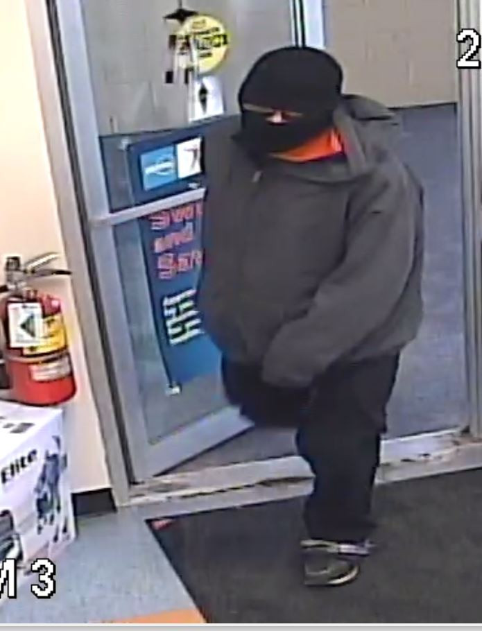 The man is described as six-feet tall, weighing about 150 to 179 pounds. According to police, he was wearing all black, and was disguised by a black balaclava and dark sunglasses.