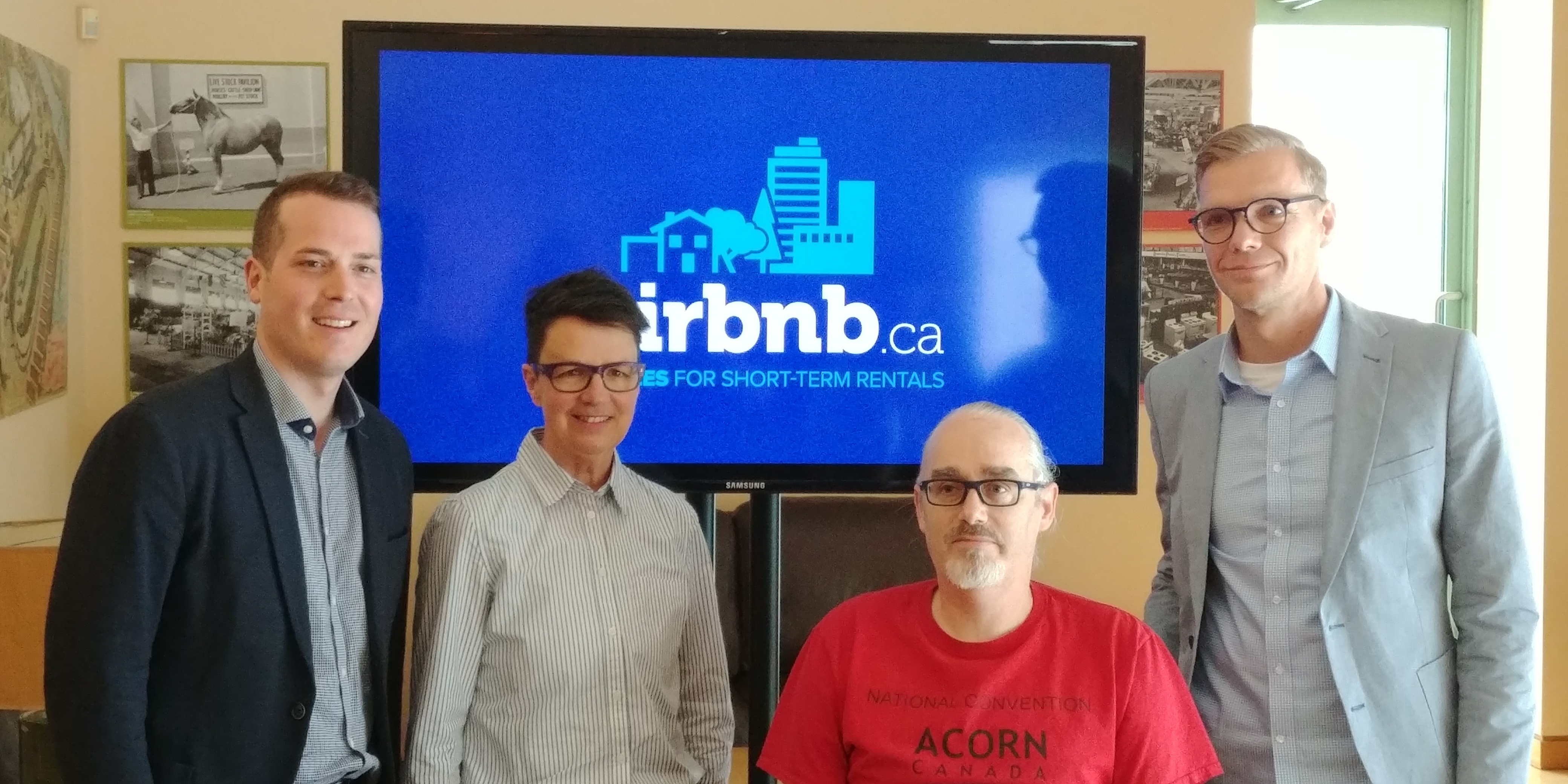 Fairbnb Canada held a press conference at city hall on Tuesday afternoon, joined by city councillors Mathieu Fleury and Catherine McKenney.