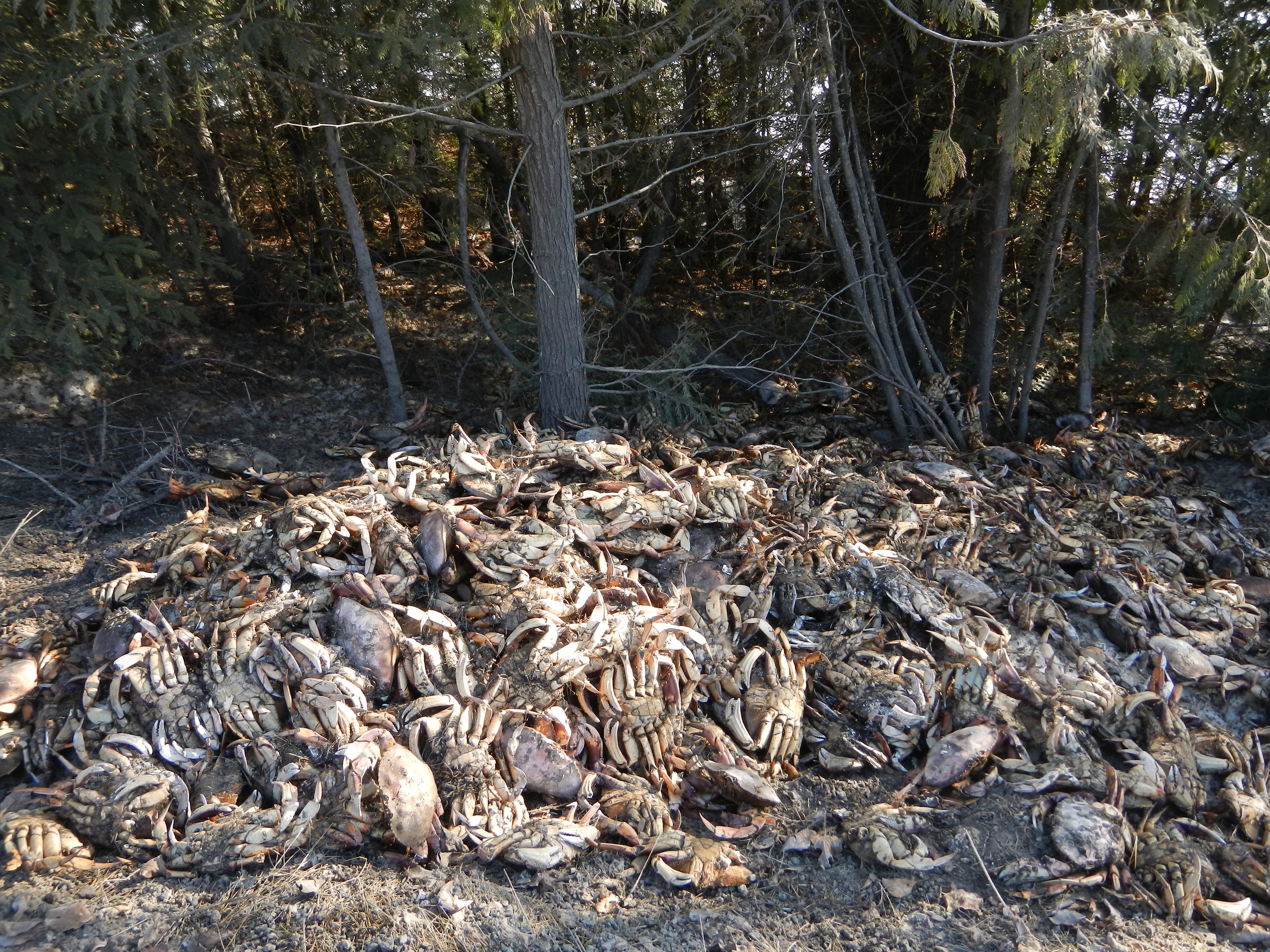The Department of Fisheries and Oceans (DFO) says Smithers detachment officials were notified about hundreds of Dungeness crabs dumped on the side of Highway 16 between Moricetown and Hazelton, near China Creek on April 2.