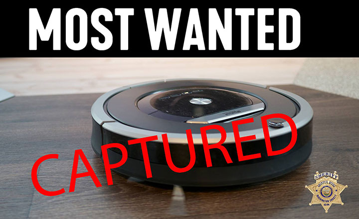 “An automated robot vacuum,” the sheriff’s office said. “We breached the bathroom door and encountered a very thorough vacuuming job being done by a Roomba Robotic Vacuum cleaner.”