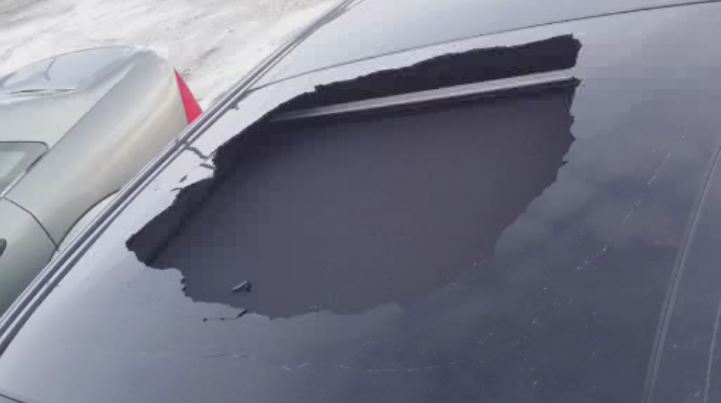 Part of the sunroof had shattered while the car was parked in a residential driveway in an area clear of objects, trees or other vehicles, she said. There was no trace of anything that could have hit the glass inside the car, she added. And there does not appear to be an audible impact preceding the shattering in a dash cam video Winder provided to Global News.