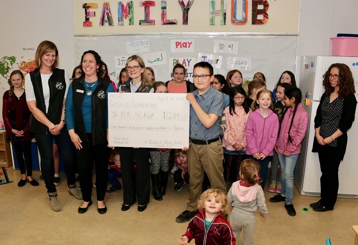 Rutland Elementary School’s student voice club visited the Central Okanagan Family Hub to make a donation.