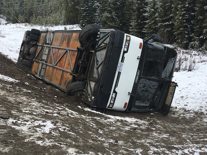 A section of Big White Road is closed because a bus has flipped on its side, Kelowna RCMP reported on Saturday morning.