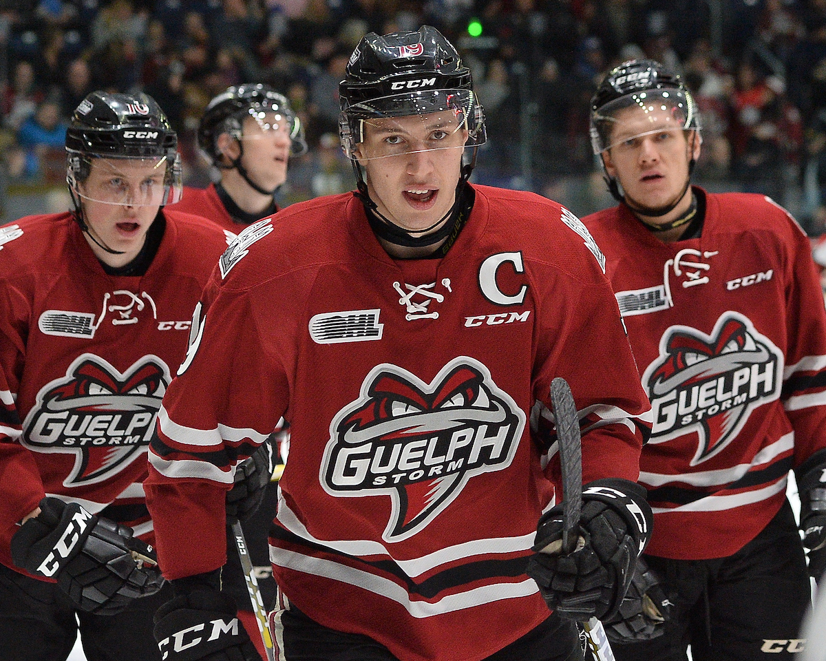GUELPH, Ont. – Nick Suzuki scored and added two assists to lead the Guelph Storm past the London Knights 5-3 on Saturday to tie their Ontario Hockey League playoff series.