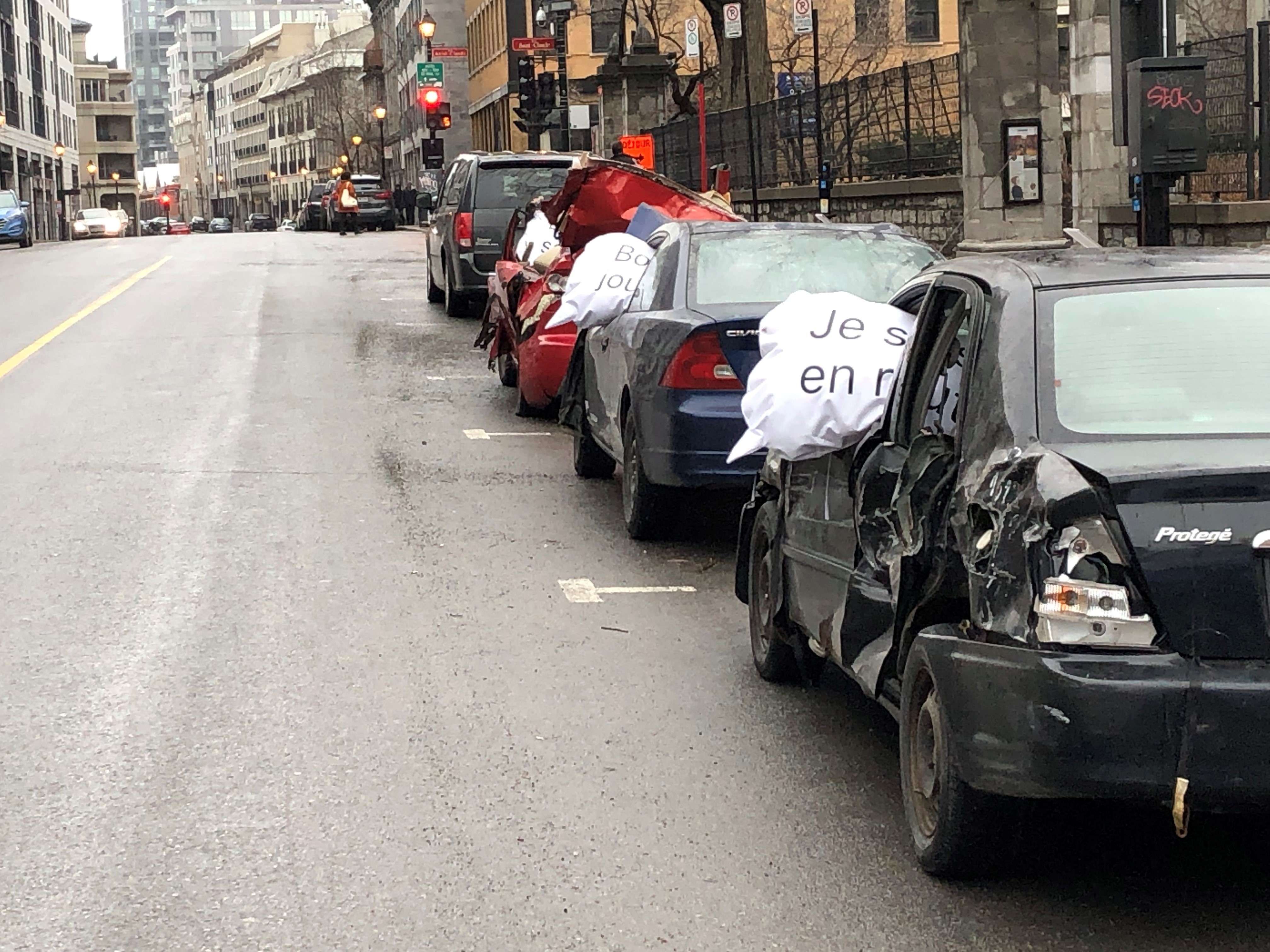 A dramatic new art exhibit about the dangers of distracted driving is on display at Place Jacques-Cartier in Montreal’s Old Port.