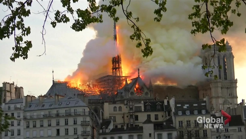 Monday’s devastating fire caused the cathedral’s wooden spire to collapse and it also spread to one of its towers causing the structure’s entire frame to be at risk of igniting.