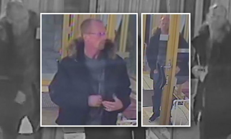 The suspect is described as: white, approximately 40 years old, with an average build, and short light brown hair that is balding on top.