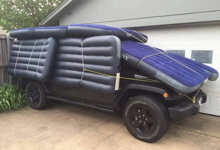 “Hail storms forecast this evening in #Texas. Be sure to protect your vehicles,” Tiffany Villarreal tweeted along with a photo showing inflatable mattresses covering a Jeep.