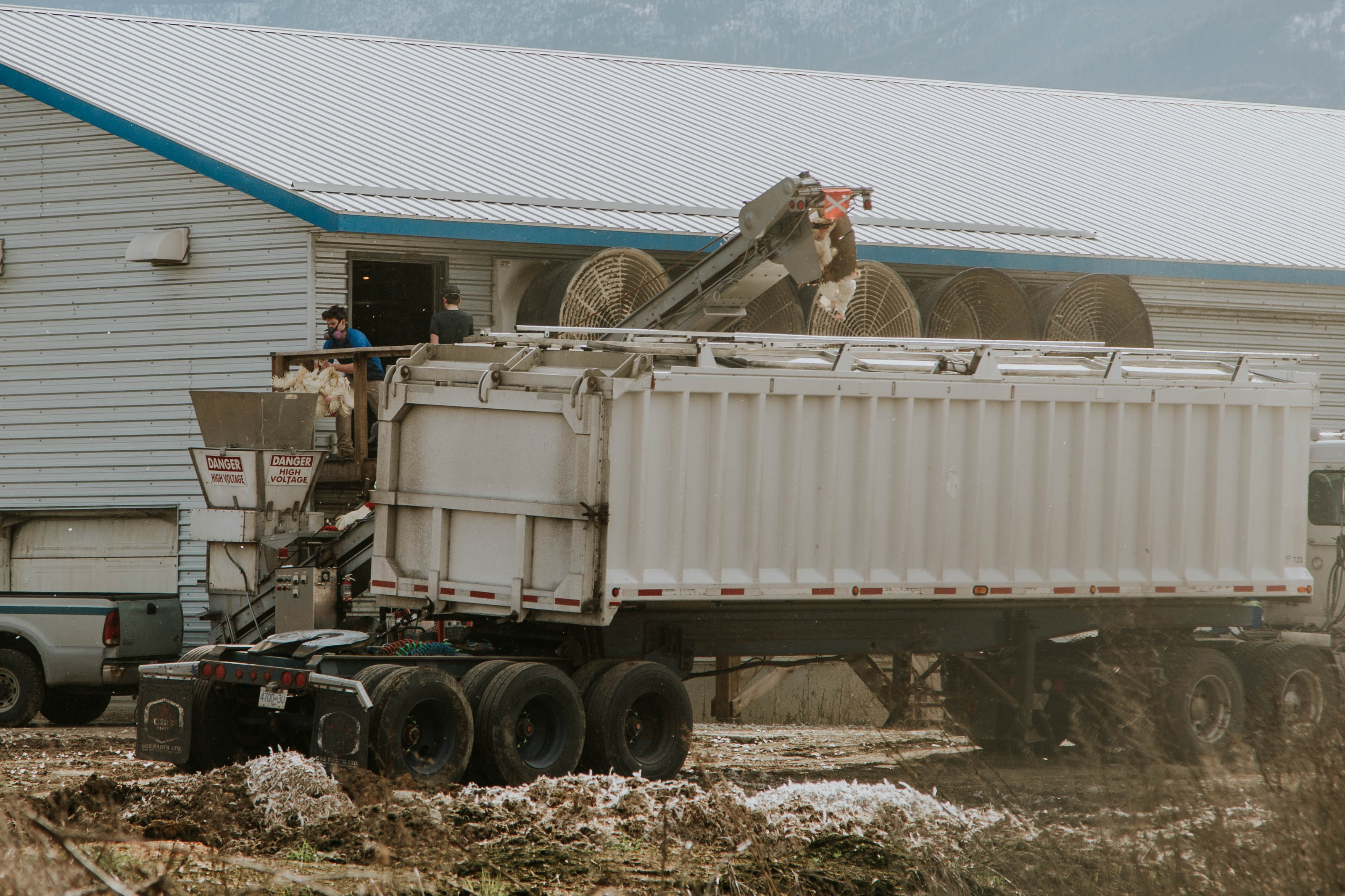 In the method recorded at the Salmon Arm egg farm, live chickens are thrown into a metal hopper, where they are electrocuted.