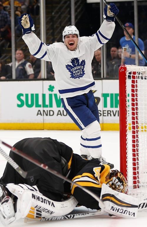 So when the referee pointed to centre ice after video review confirmed Toronto winger Zach Hyman hadn’t interfered with Boston goalie Tuukka Rask on his bullet one-timer, the 21-year-old pounded on the dasher board with his glove and breathed a sigh of relief.
