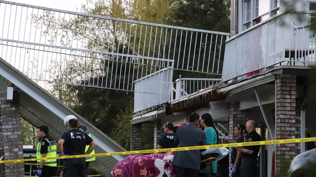 The collapse happened during a reception at a home in the Aldergrove community on Friday, where over 100 people had gathered to celebrate the nuptials.