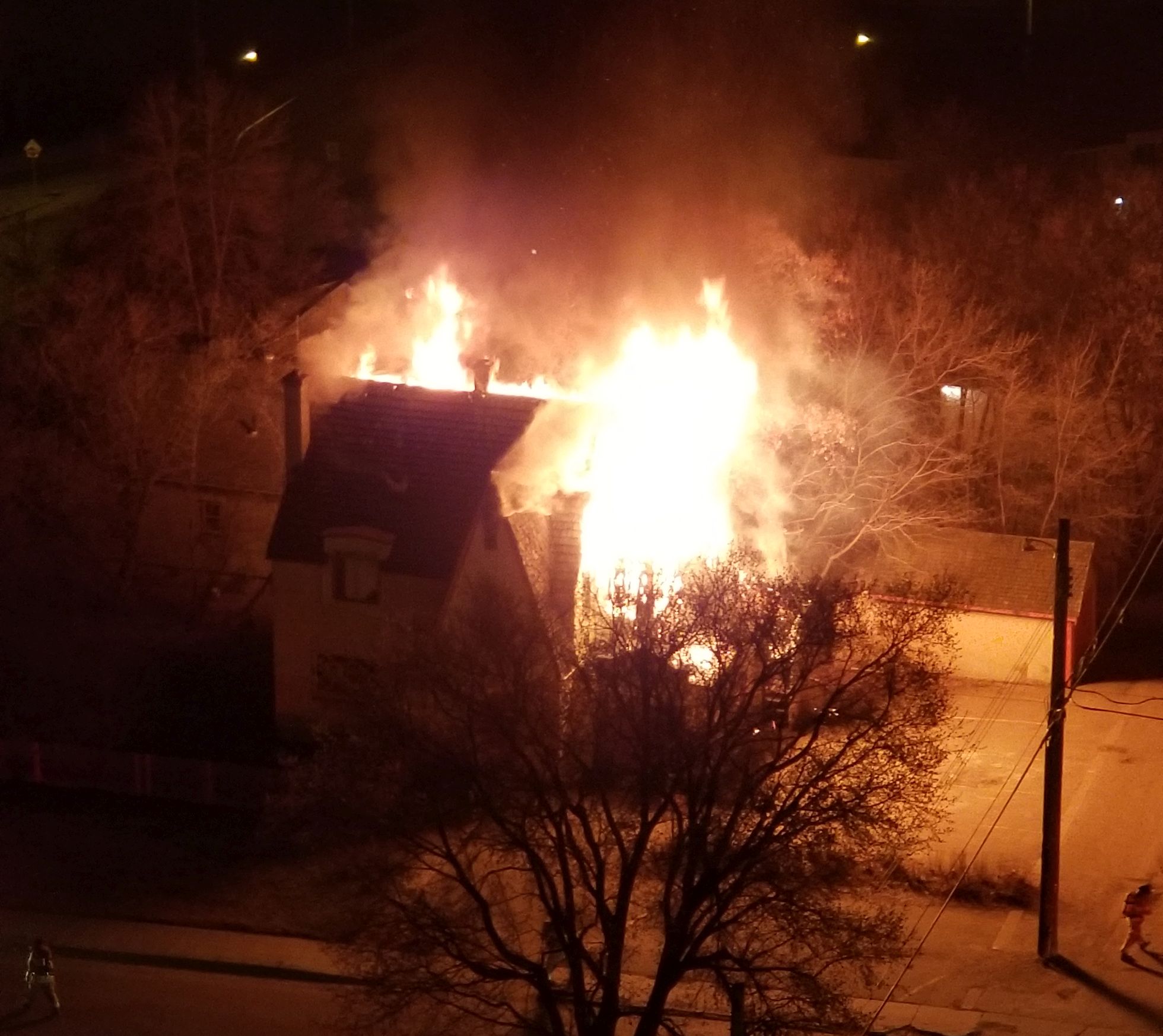 Flames shot into the sky and smoke filled the air as a house in downtown Edmonton caught fire early Monday morning.