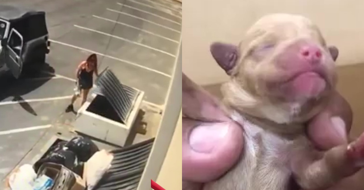 The Riverside County Department of Animal Services released surveillance video of the woman pulling up to a dumpster behind an auto parts store in Coachella Thursday afternoon.
