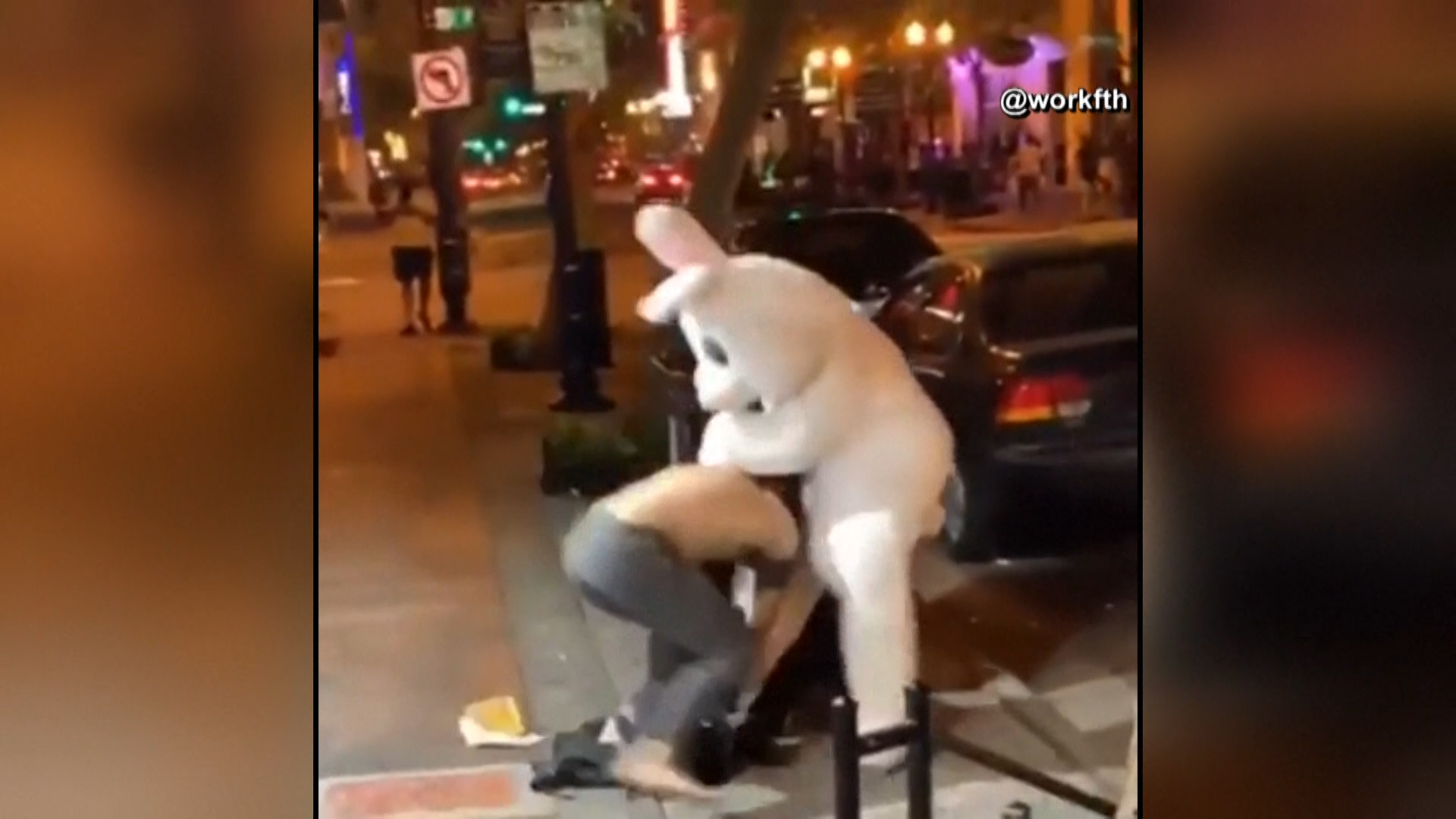 The Easter Bunny was dealing out something different instead of chocolate eggs on Sunday, after video caught a man dressed up as a bunny involved in an apparent fight in Florida.