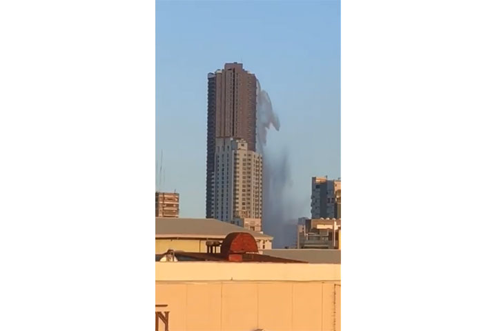 Michael Rivo shared video on social media showing water, reportedly from a rooftop pool, cascading down the side of Anchor Skysuites apartment to the ground below, the Manila Bulletin reported.