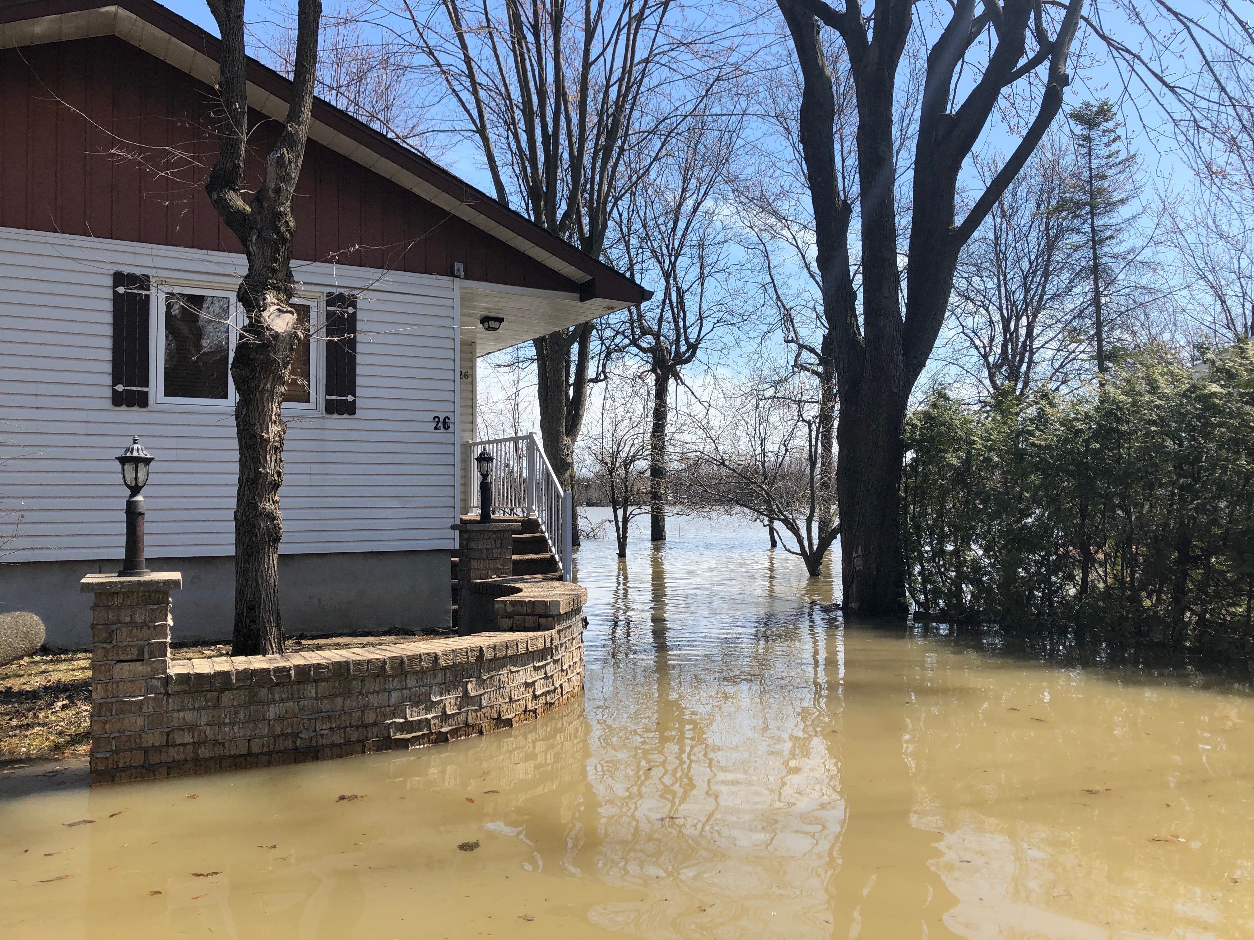 Some driveways on Île Mercier now look more like boat launches, and waterfront back yards are now part of the river. In the middle of some residential streets, water is up to the knee or waist.