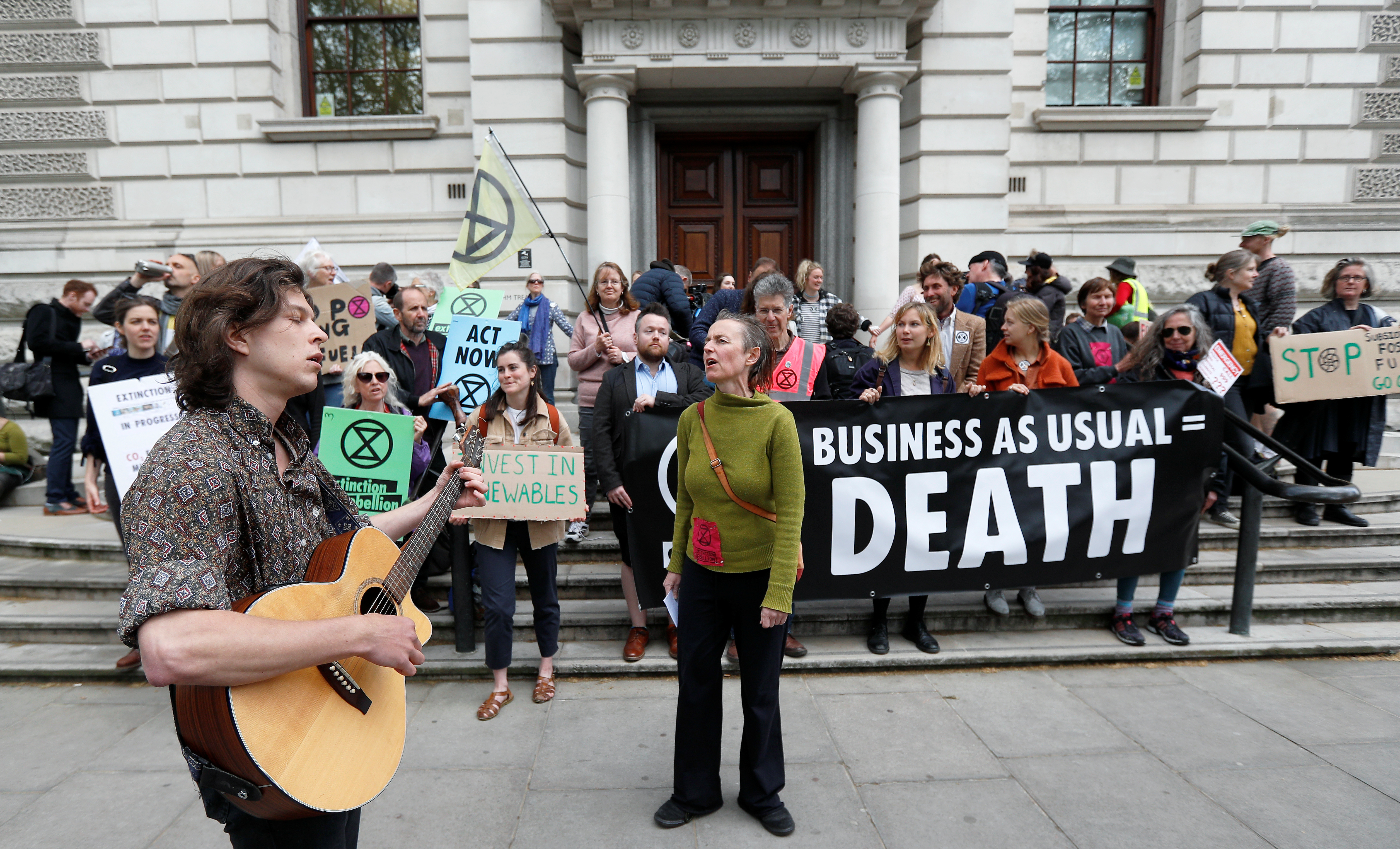 Extinction Rebellion advocates non-violent civil disobedience to force governments to reduce carbon emissions and avert what it says is a global climate crisis that will bring starvation, floods, wildfires and social collapse.