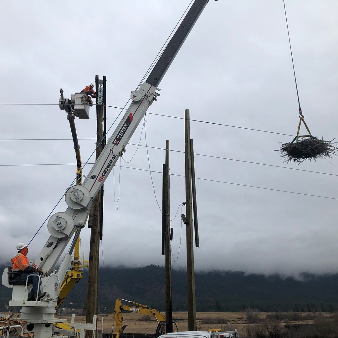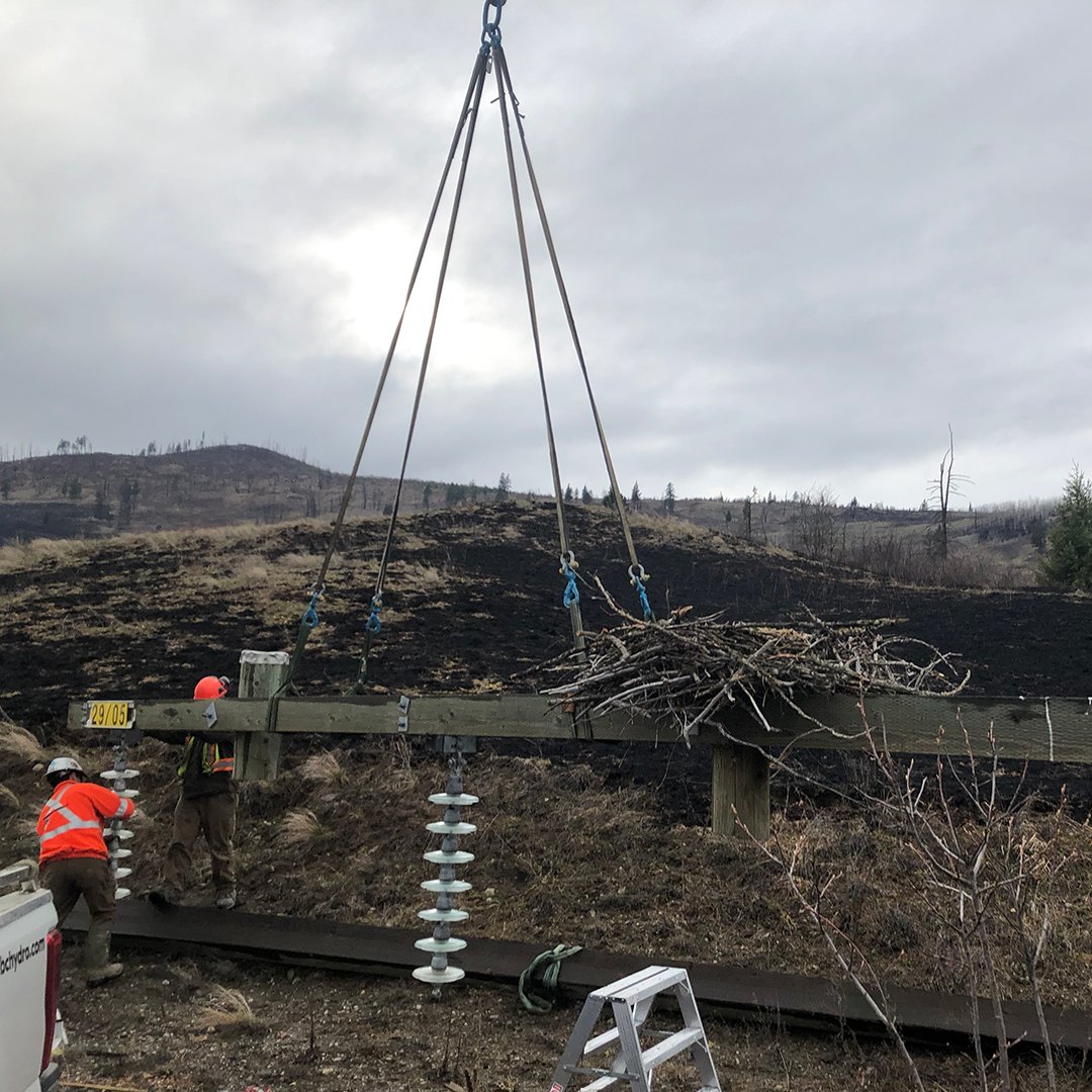 BC Hydro says working with large raptors such as Osprey is a common occurrence, but dealing with eagles is rare — as they typically nest in large trees, and avoid power poles.