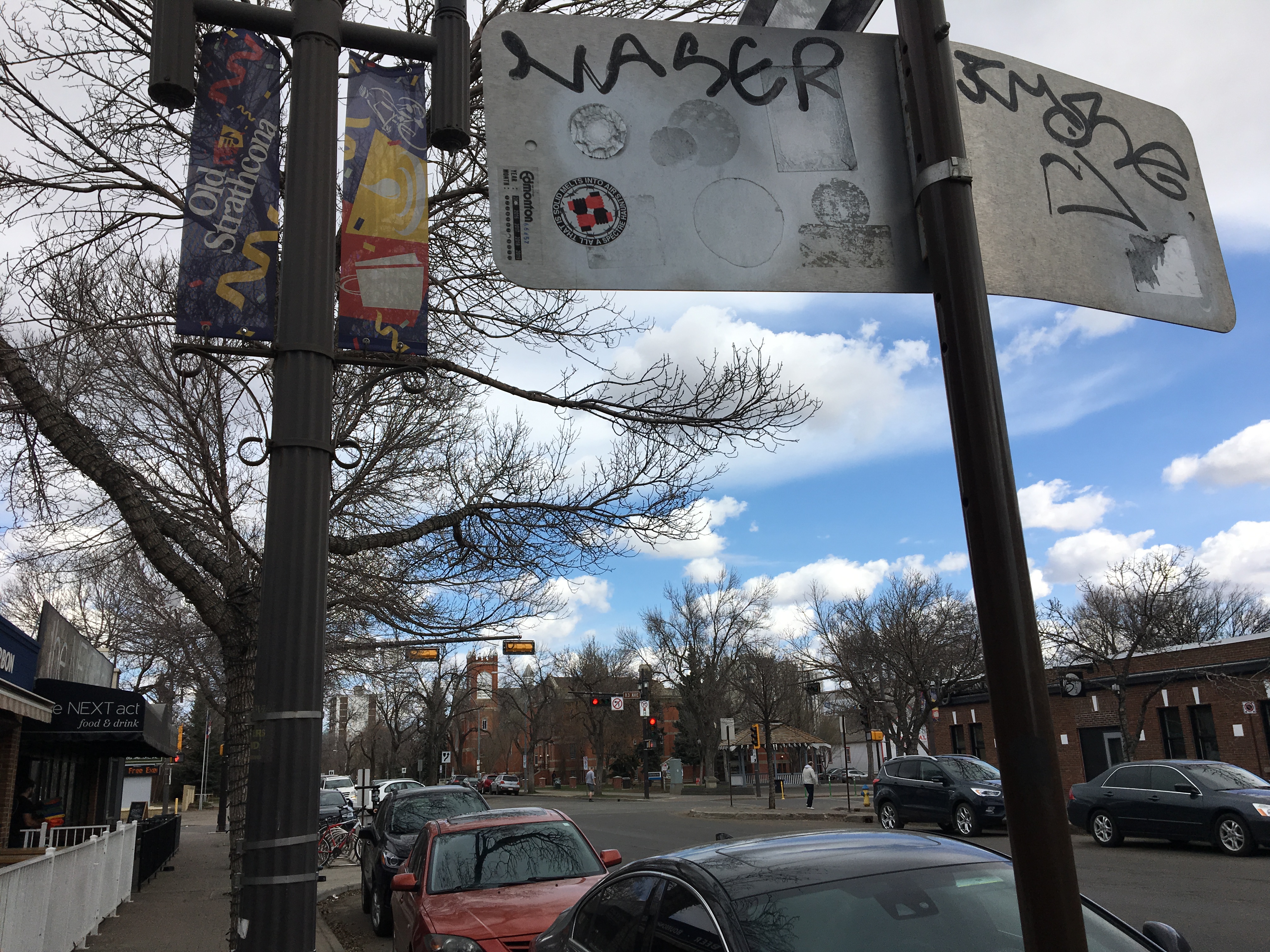 Graffiti stained vast portions of the Whyte Avenue area on Friday, visible to many passing through.