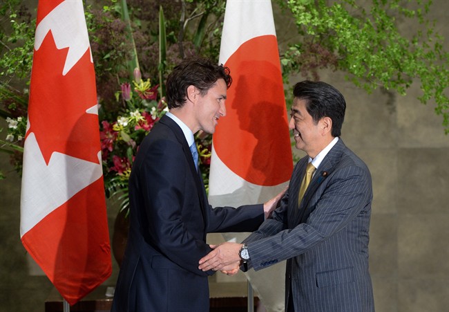 WATCH: Trudeau welcomes Japanese Prime Minister Shinzo Abe