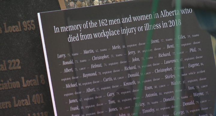 Albertans marked the International Day of Mourning on Sunday, commemorating 162 workers who died in 2018 while highlighting the need for safer and healthier practices to protect employees.