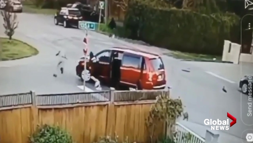 Security video from a home in the 13500-block of 88A Avenue captured the chaotic chain of events, which happened in broad daylight just before 8 p.m.
