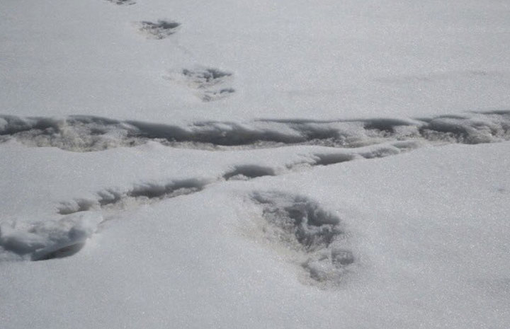 The photos shared by the army show indents in the snow, presumably made by a large animal, that appear to form a path of sorts.