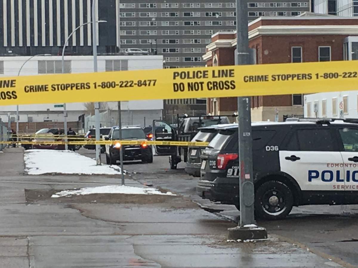 Police confirm the man was struck and taken to hospital with unknown injuries. No Edmonton police officers were harmed during the shooting, police said.