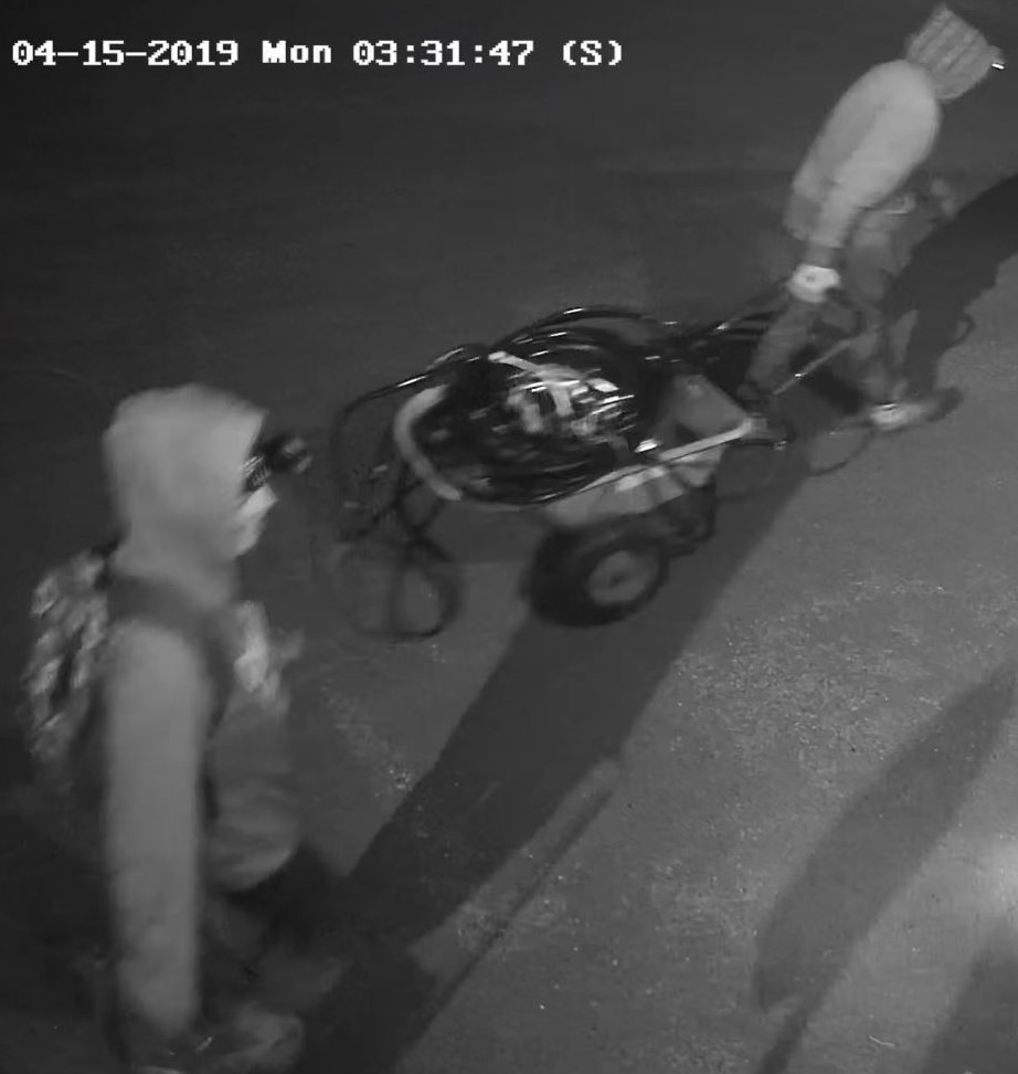 The first incident allegedly took place on April 15 at Crystal Lake Road station. At around 3 a.m., police say suspects broke into the station just north of Kinmount and allegedly stole scrap wire and an air compressor. Two suspects were captured on video surveillance. One is described as a man wearing beige work boots, gloves, a light-coloured jacket, a hooded sweater and a headlamp. The second suspect was wearing a hooded sweater, a black hat, a backpack and Ugg-style boots.
