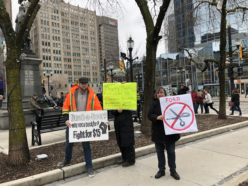 More than 100 people gathered for a general strike against the Ford government in downtown Hamilton on Wednesday afternoon.