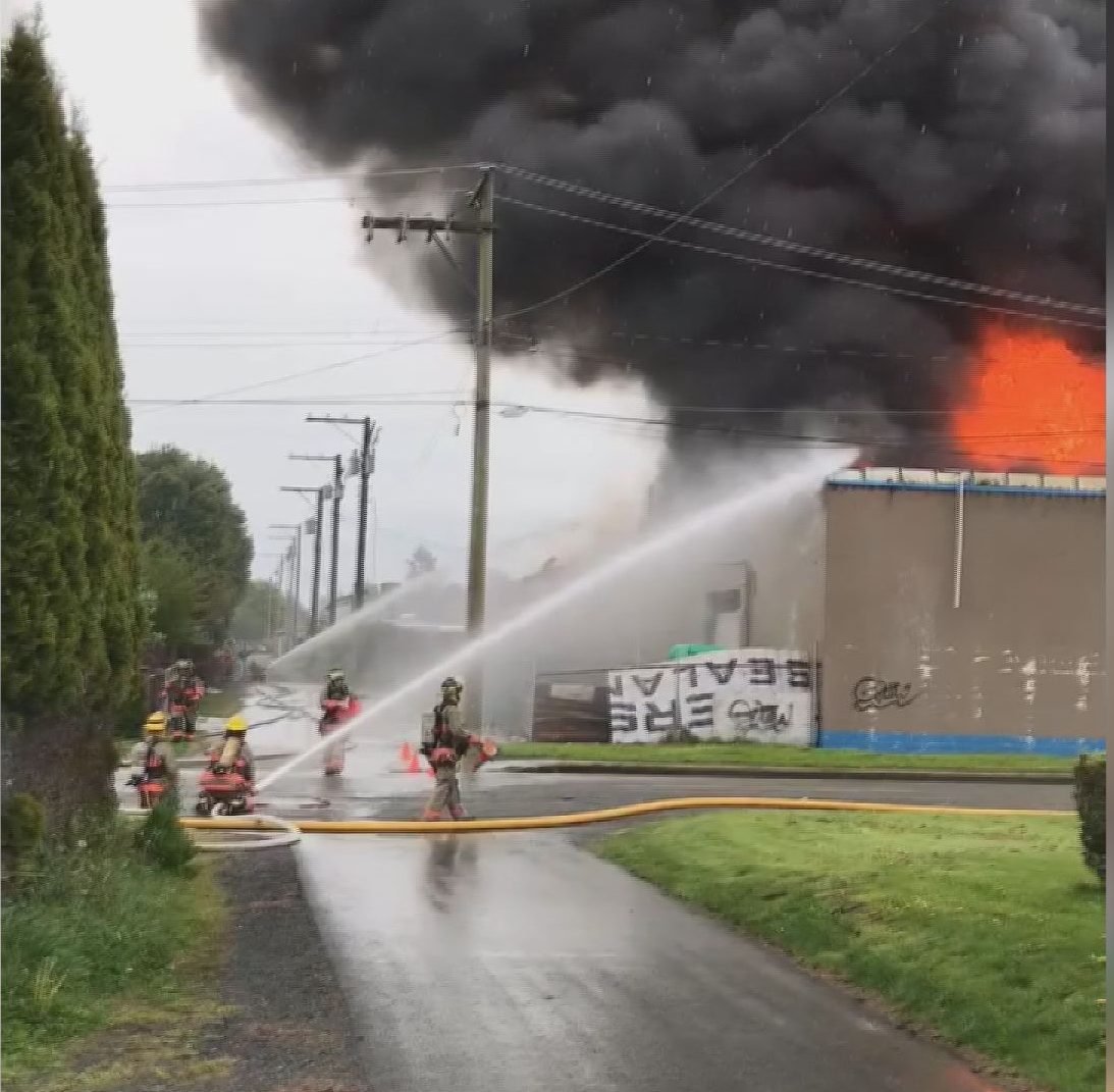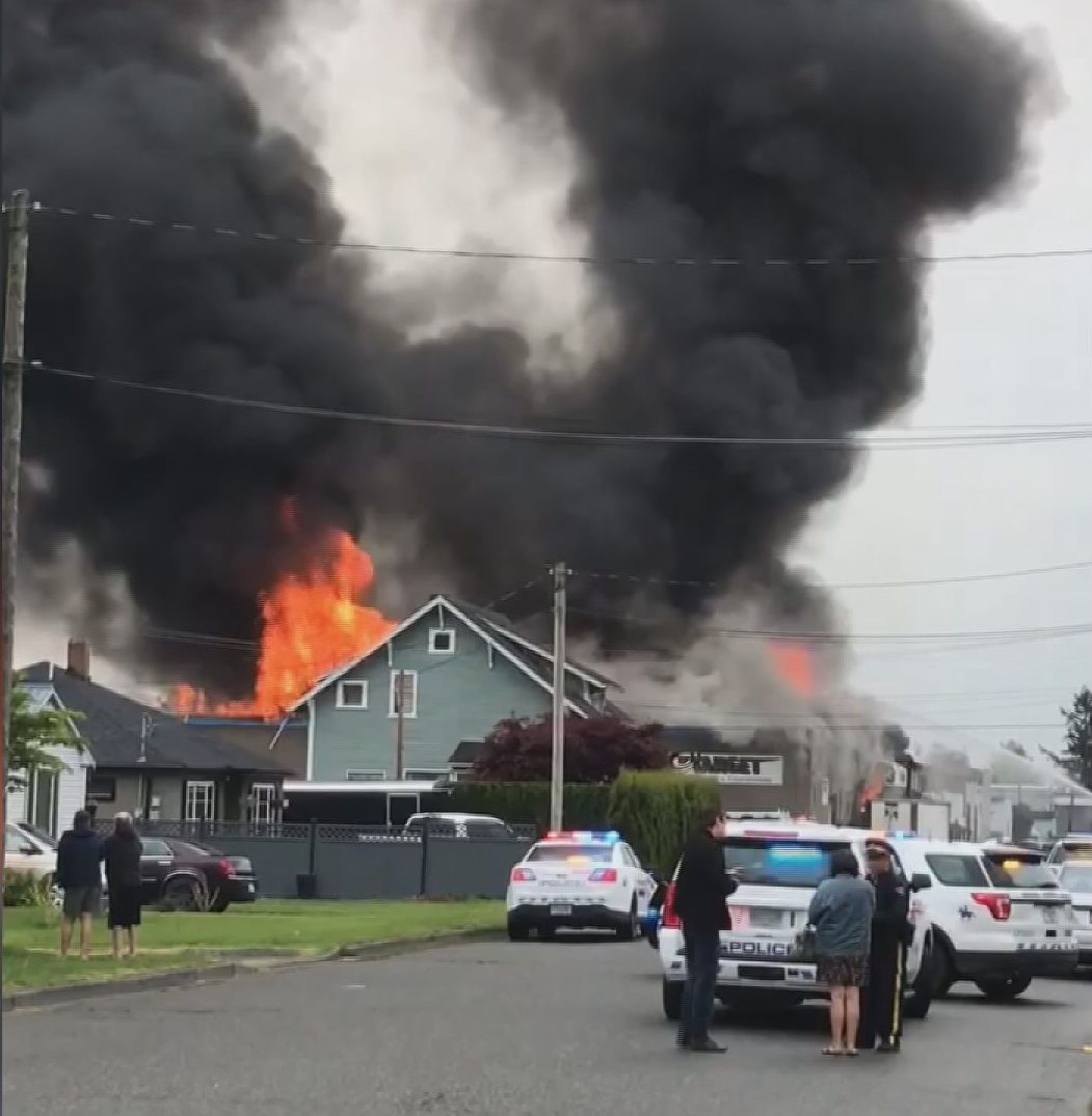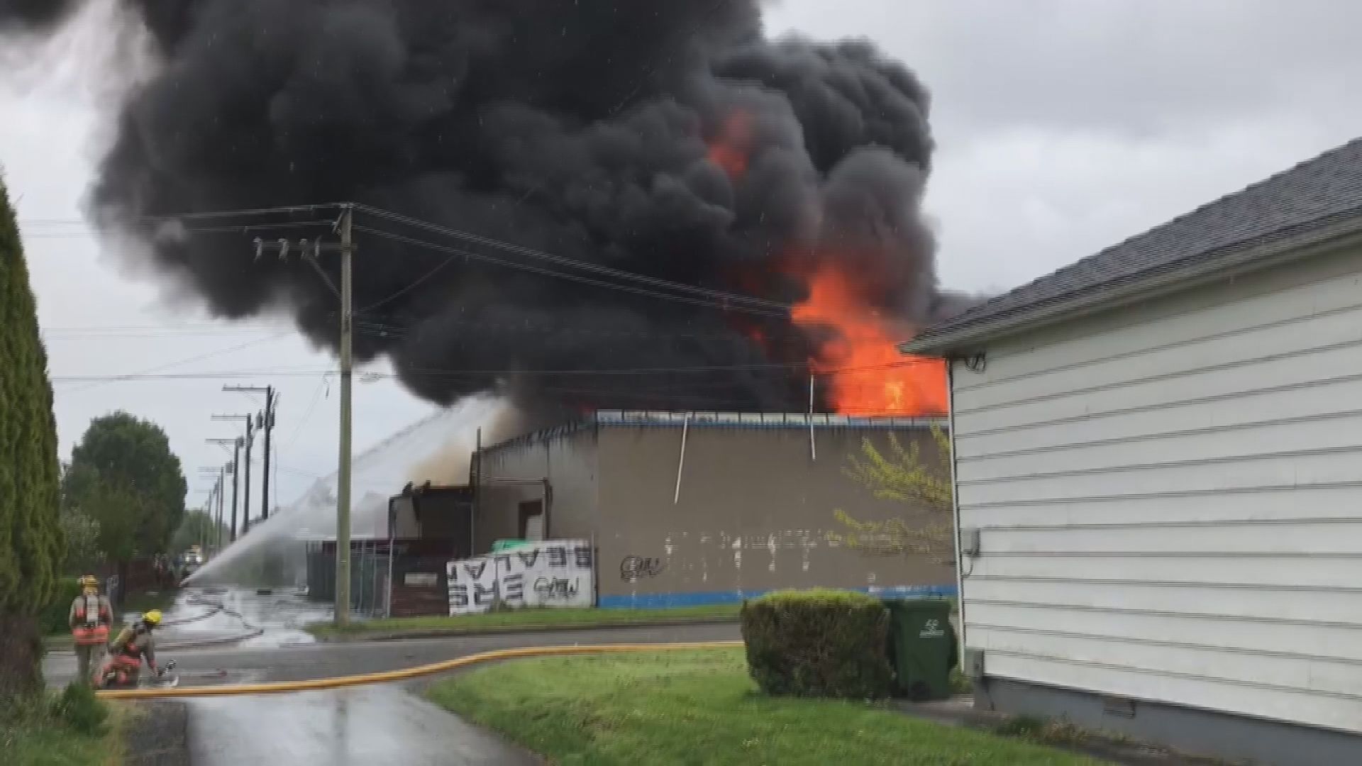 Chilliwack Fire Department Assistant Chief Chris Wilson said crews were called to the area around 10:15 a.m. to find the building fully engulfed and were forced to mount a defensive attack due to the explosions.