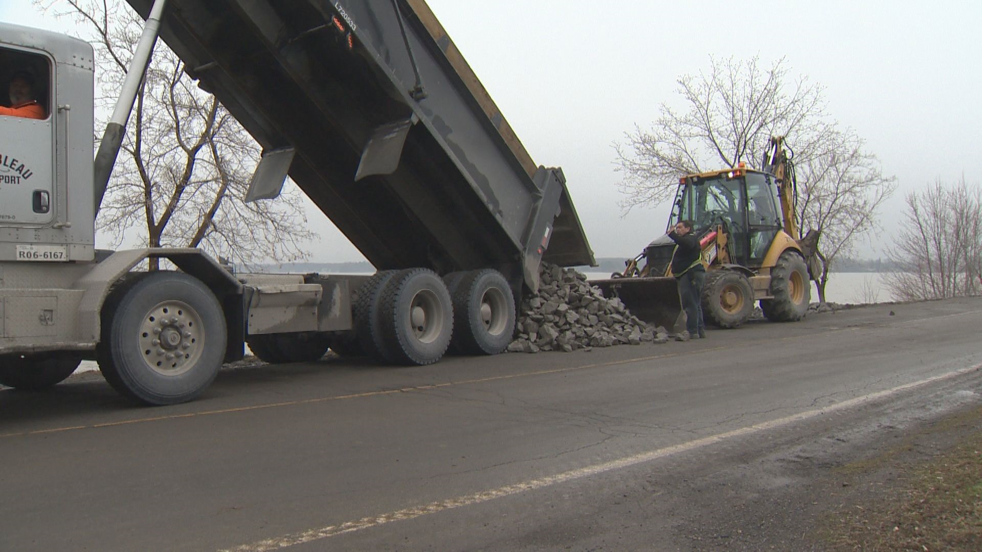 For the past two days, workers have been dumping rocks along the shoreline on Chemin de l’Anse.