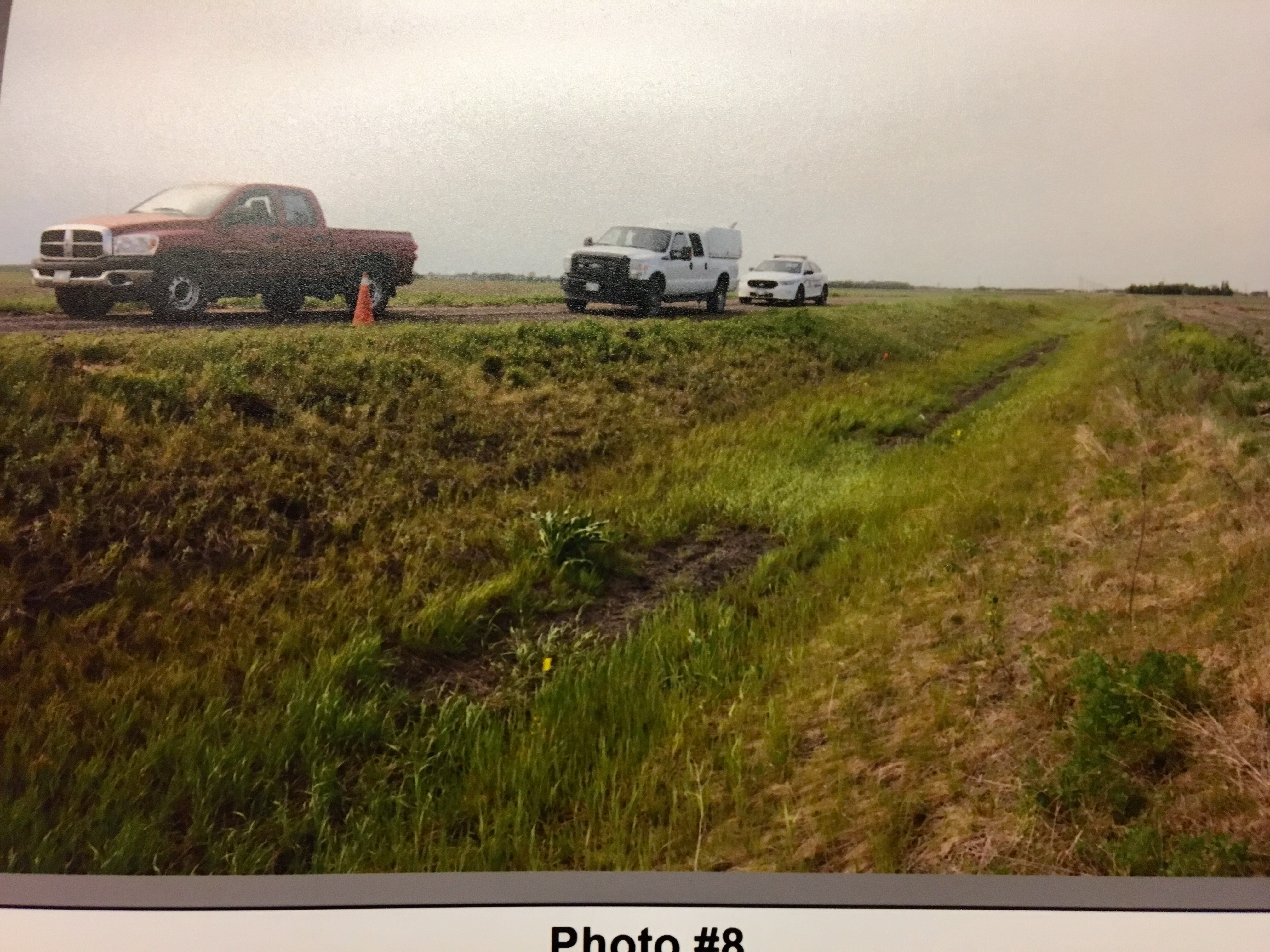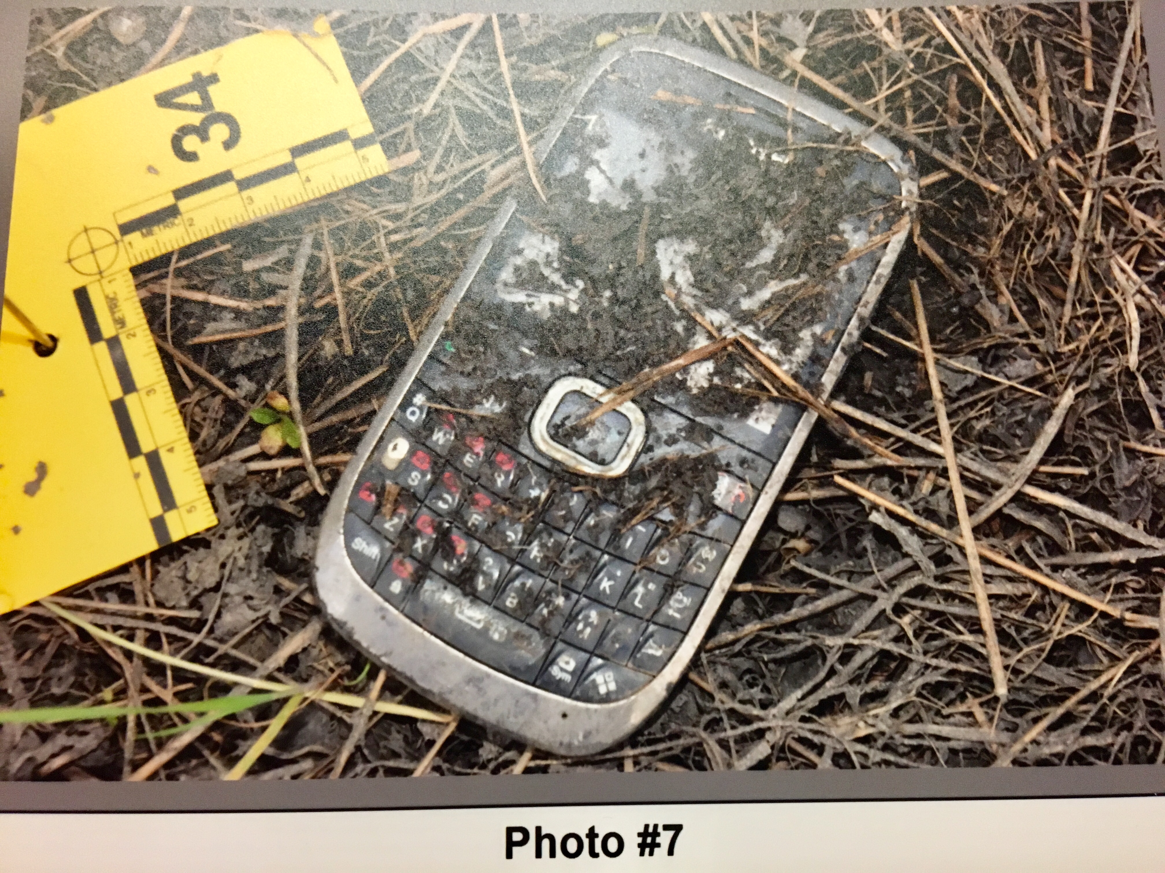 A search of the adjacent farmland on the other side of a road found a muddy cellphone, face down on the ground.