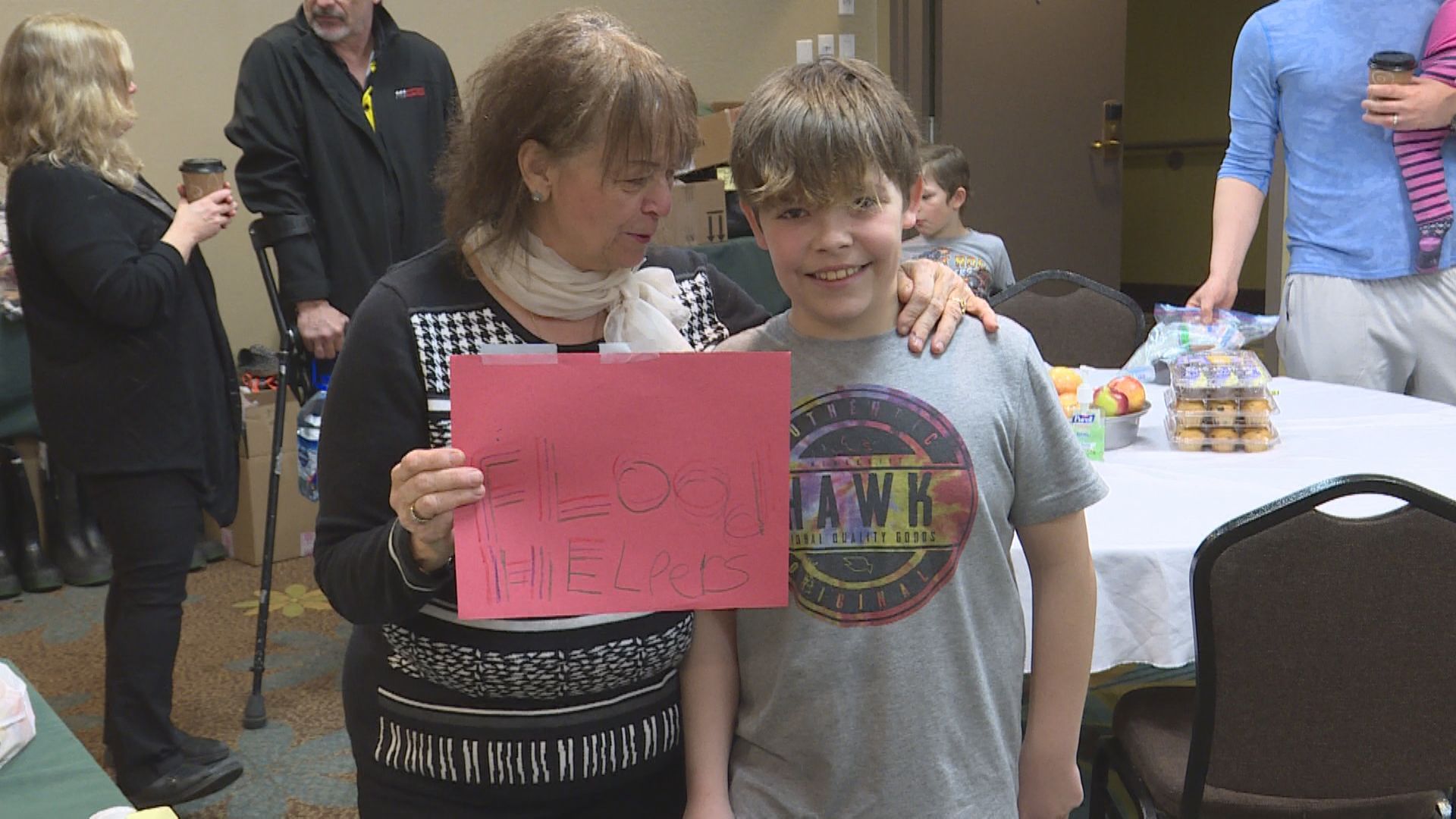 Local volunteers at the shelter have tended to the needs of several hundred flood victims, handing out necessary items such as food and clothes. Luhan Wahbeh and Melody Nagant have been working long days, lending a helping hand and ear where they can.