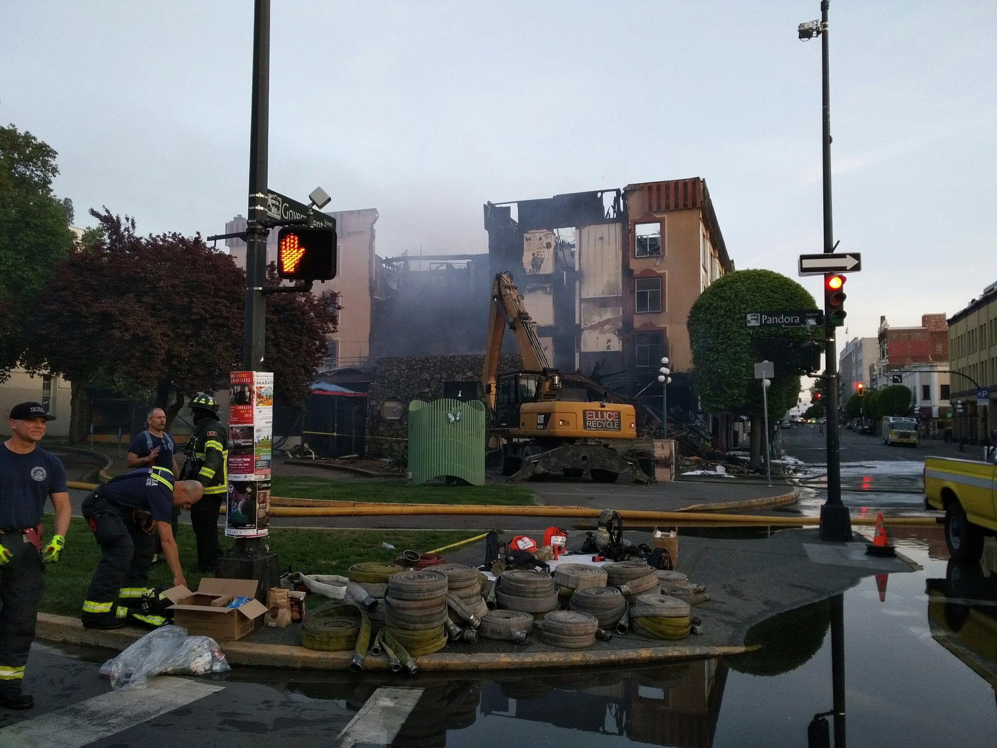 Fire crews extinguished a massive blaze in downtown Victoria on Monday.