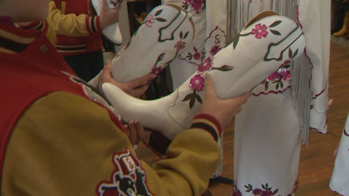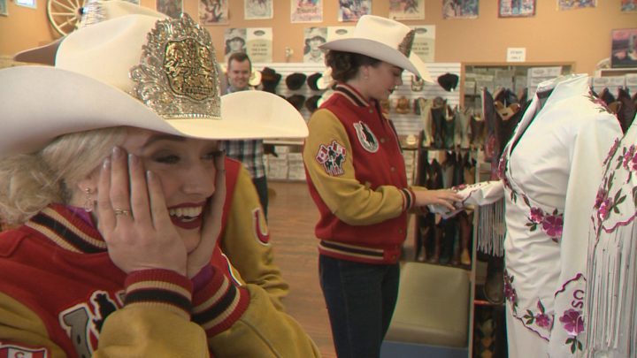 This year’s Stampede Queen Carly Heath and Princesses Keily Stewart and Courtney Dingreville picked up their outfits on Monday at the Alberta Boot Company.