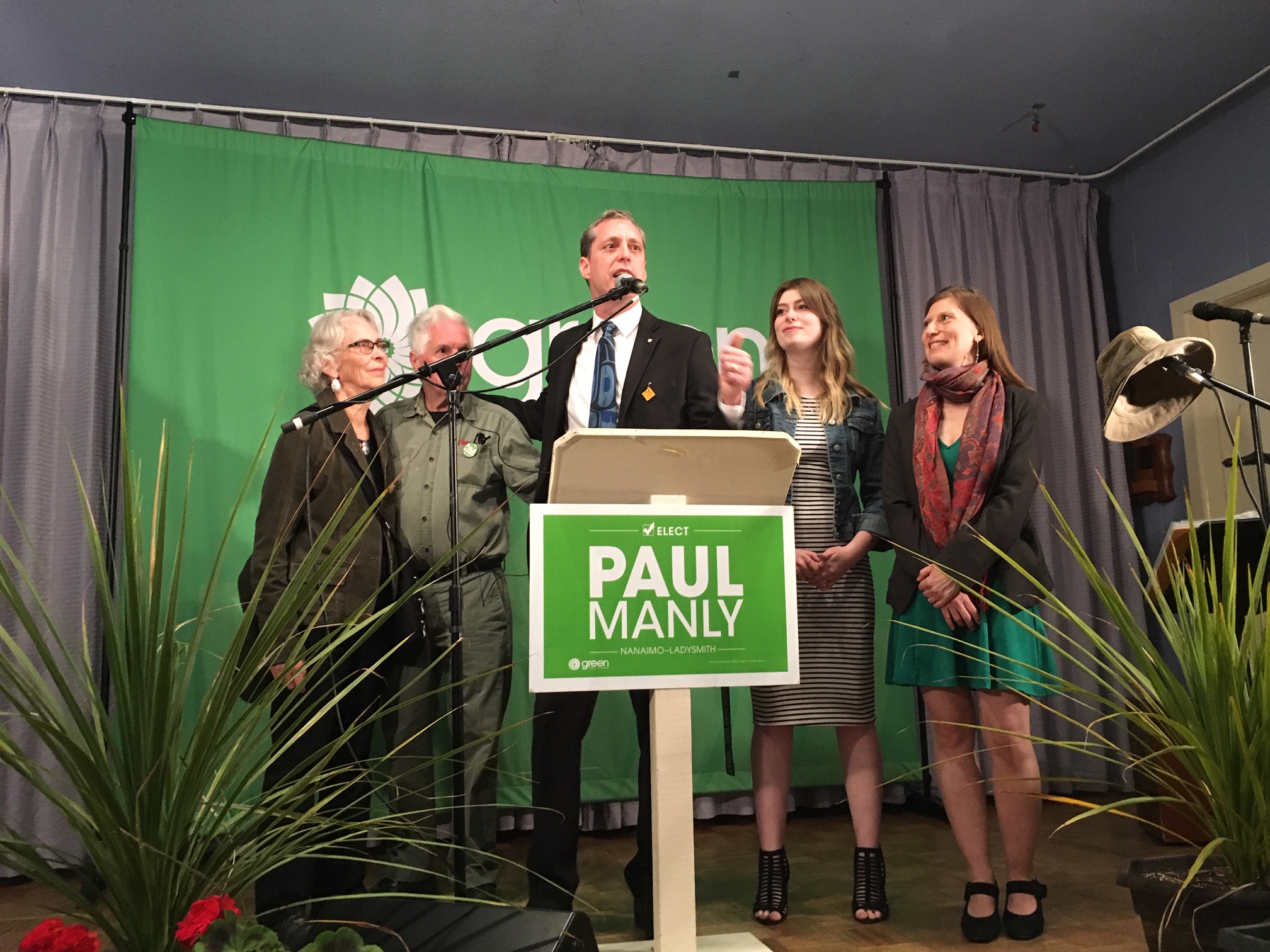 Manly becomes the second-ever federal Green Party candidate in Canada`s history to win an election, taking home more than 37 per cent of the vote.